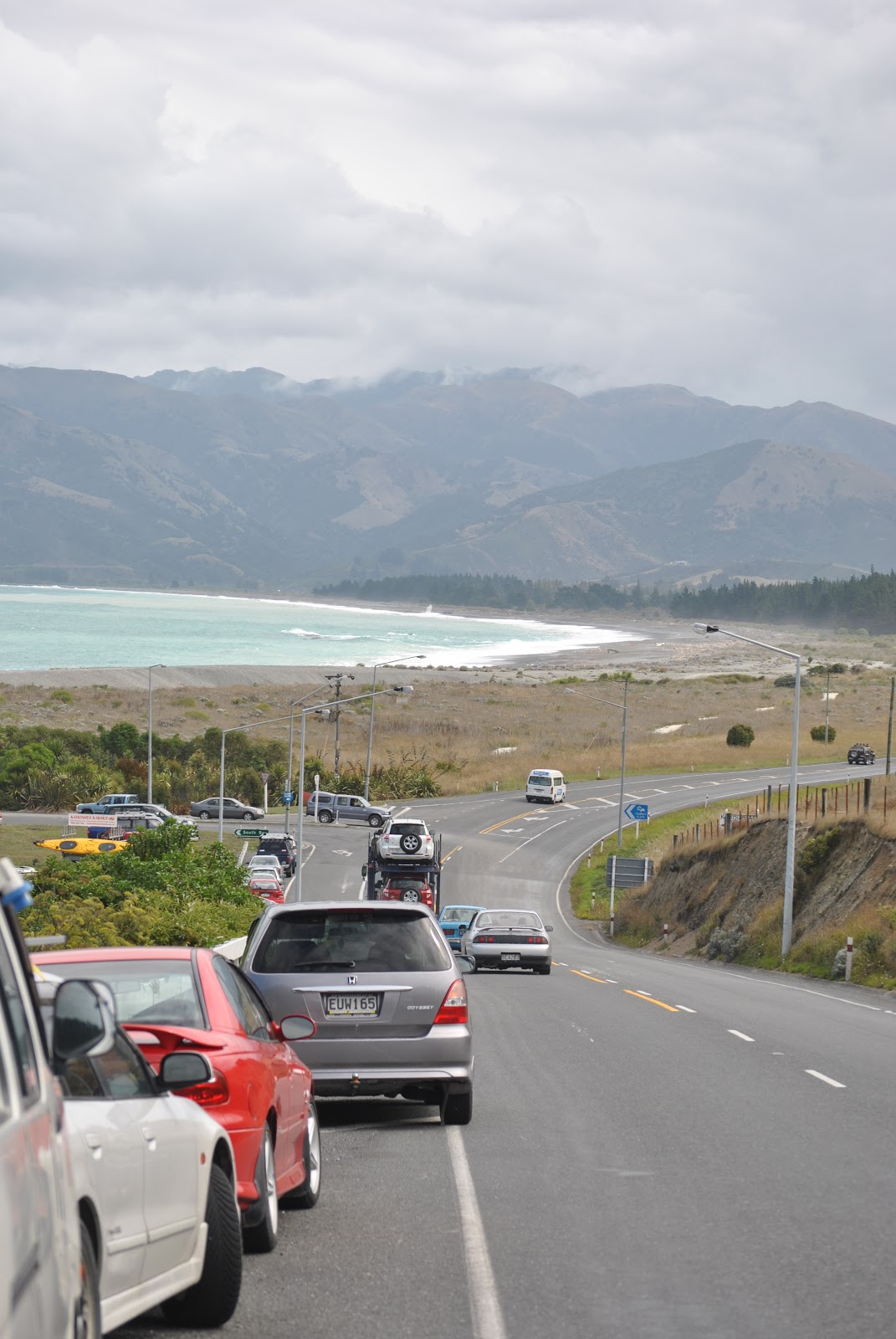 Jennifer and I, on our way north out of Christchurch toward the North Island, traveled through an incredibly diverse landscape – one minute Pacific Coast Highway, another minute Dakota badlands, another few minutes Kansas prairie, and then a turn of western North Carolina hills and valleys. We ended up in Kaikoura, a peninsula on the eastern shore of the north tip of the South Island, jutting out into the Pacific Ocean.